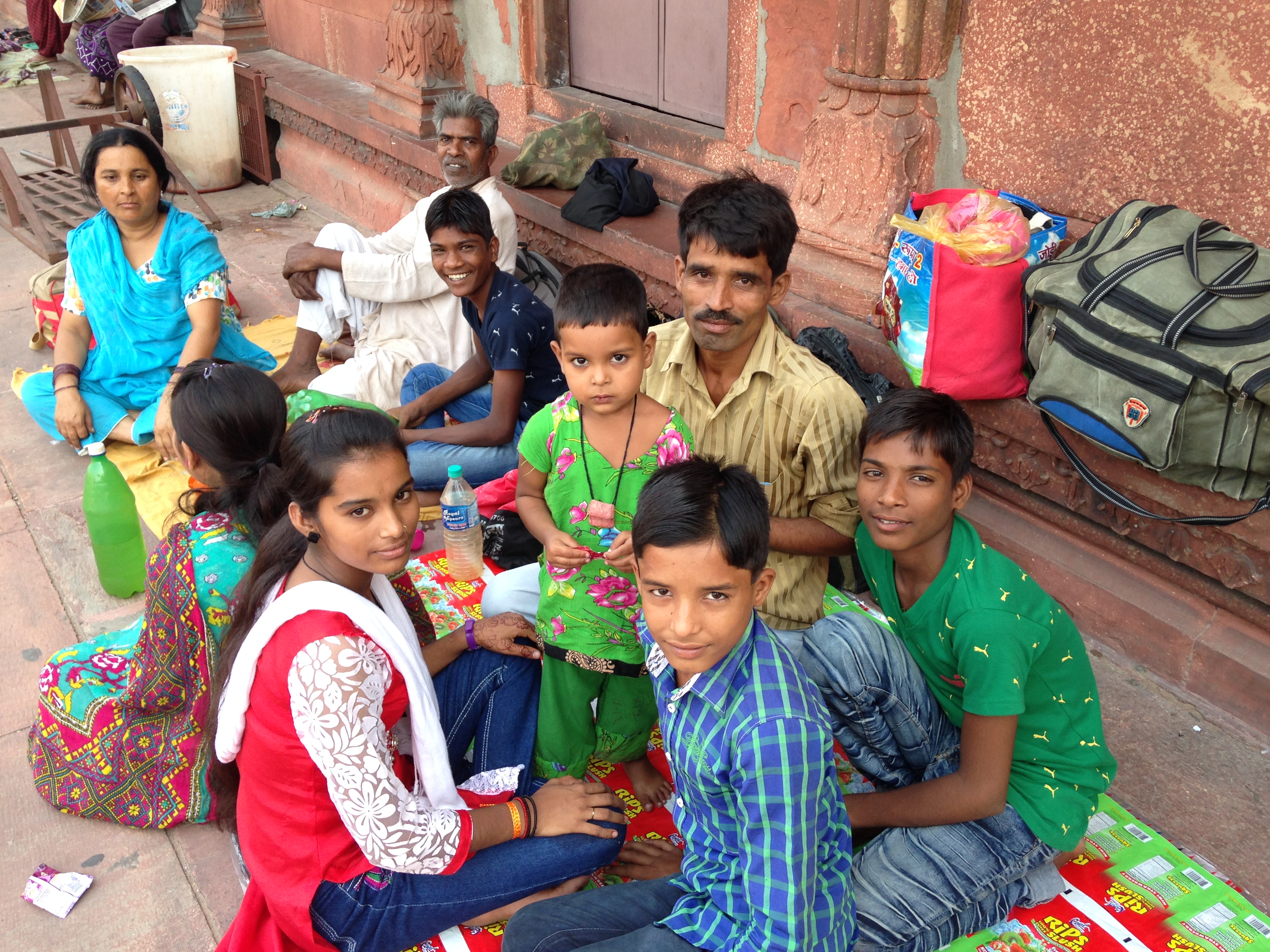 Avec ce décor en toile de fond, et les jambes recouvertes d’un longyi, nous allons visiter la Mosquée de Delhi (Jama Masjid) la plus grande d’Inde. Une merveille. Une famille d’Indiens me demande de les prendre en photos et de toucher la petite dernière. Puis, le père revient vers Maé un peu plus tard pour qu’elle la touche à son tour et que je les prenne en photo toutes les deux. Pendant ce temps, David est en train est en train de se faire convertir par quelques jeunes et fervents musulmans.