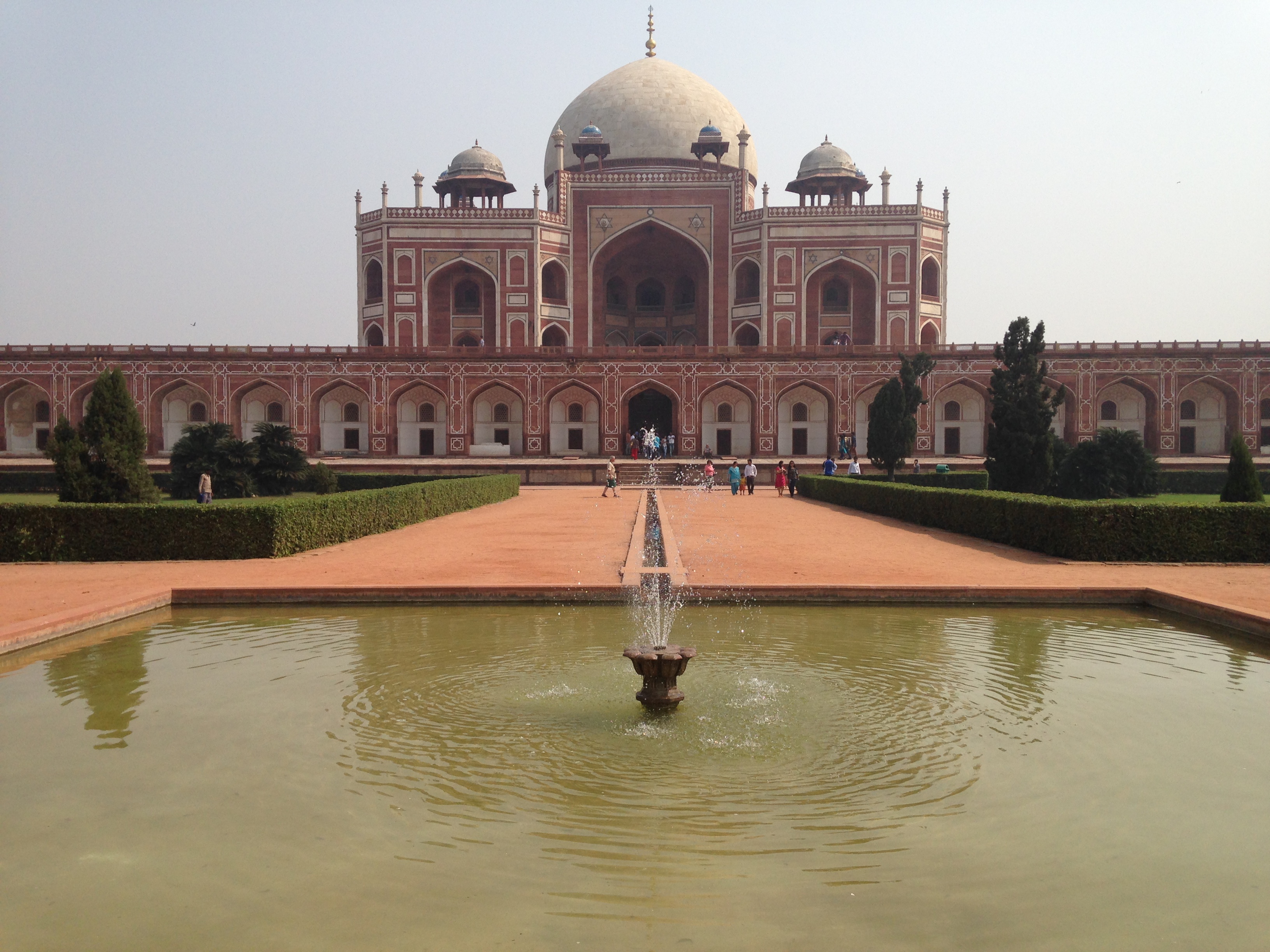 265Puis nous nous baladons à l’extérieur du Fort rouge, déjà très beau, l’intérieur du Fort d’Agra étant plus intéressant d’après Shaadi, qui nous emmène ensuite au Tombeau de Yumayun, un très beau mausolée Moghôl.  Ensuite, visite des quartiers coloniaux Anglais, le palais présidentiel, les ministères, et le mémorial de Gandhi. 273