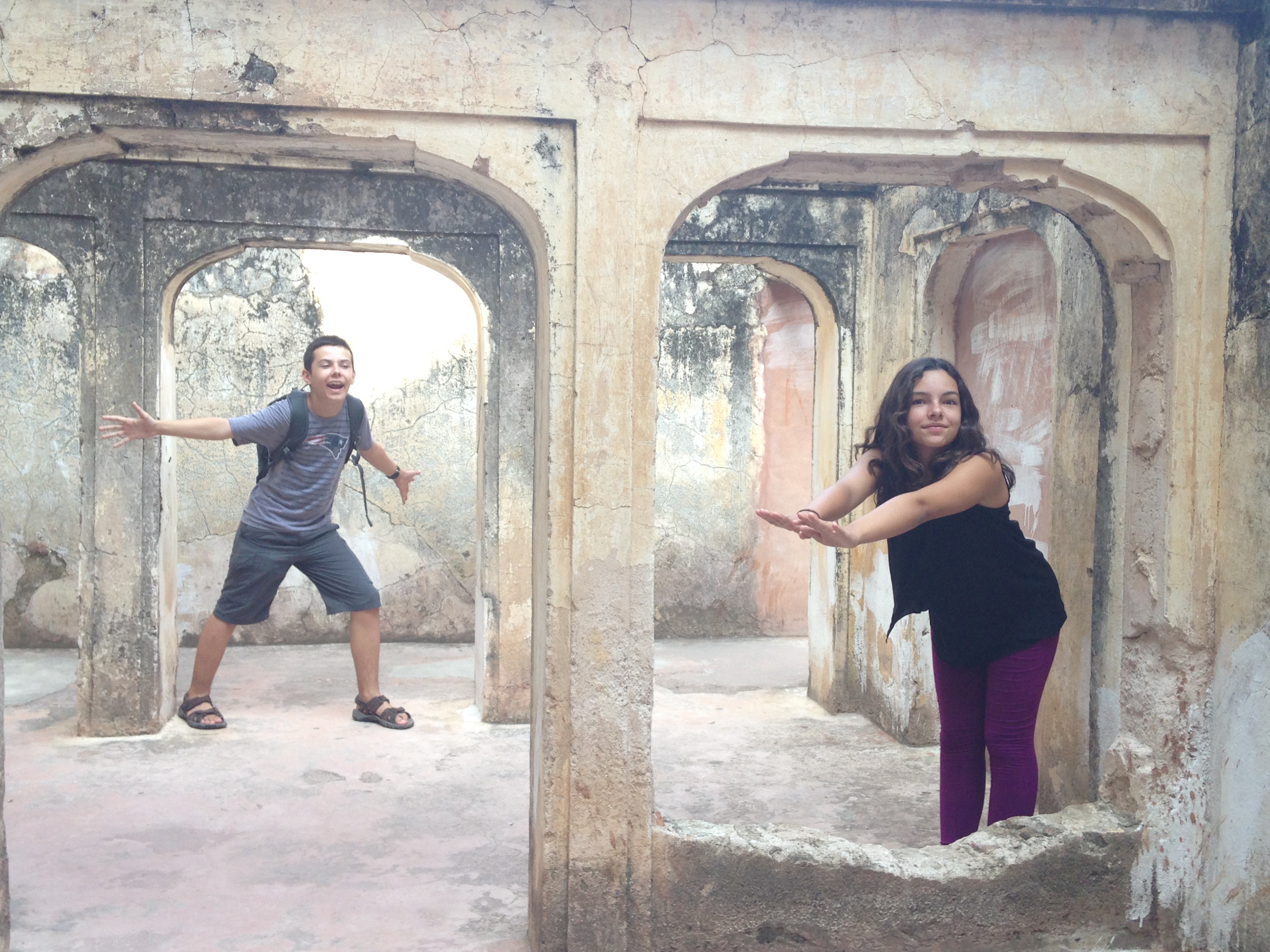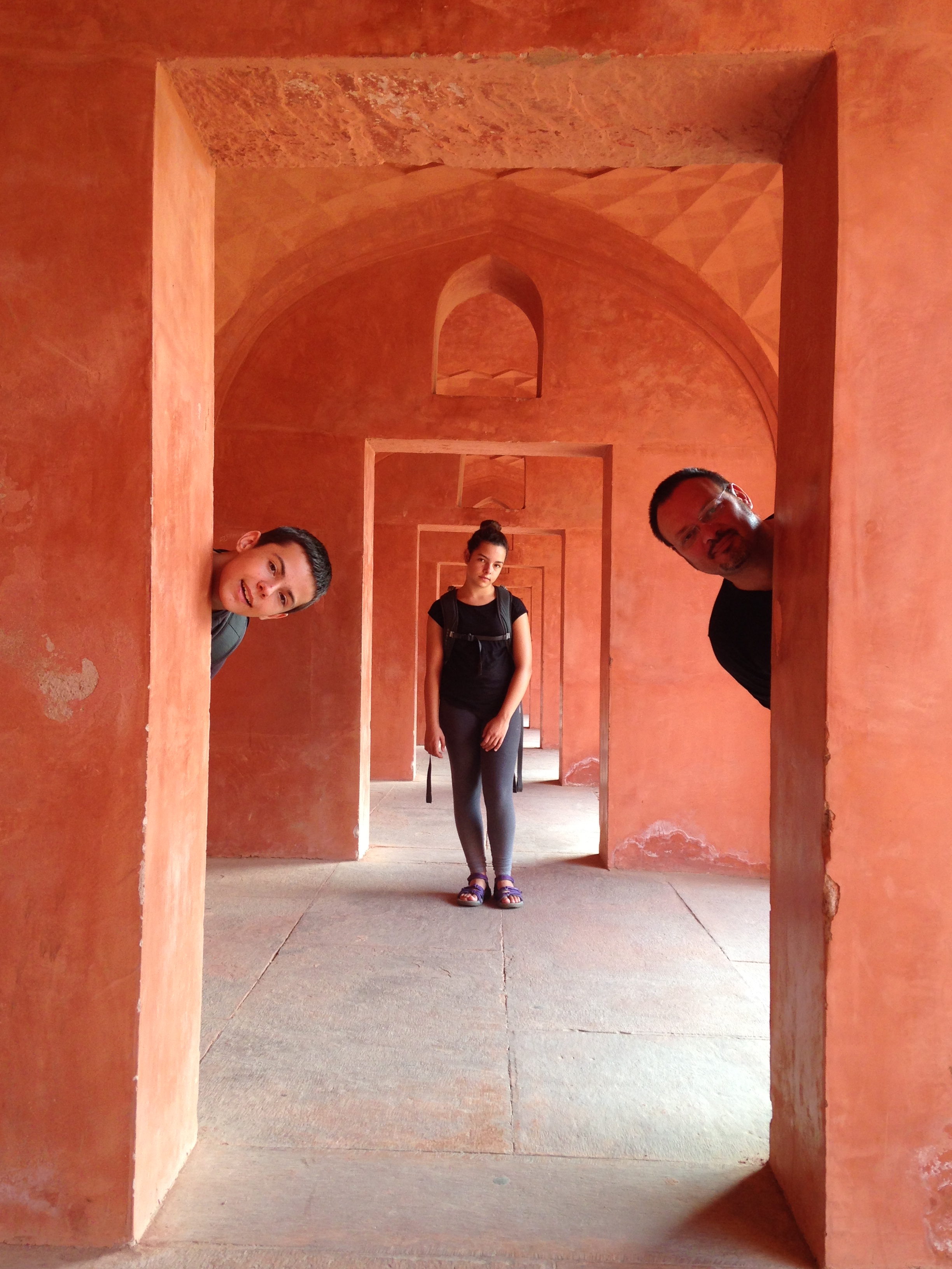 Le lendemain nous visitons le Fort d’Amber (ancien nom de la ville de Jaipur). Encore un lieu très important pour les Hindous qui se pressent ici en masse. Il faut dire que nous sommes à quelques jours de la grande fête de Dussehra, et on sent monter l’effervescence partout où nous passons. Nous nous perdons dans les dédales du fort; encore un bon moment en famille. Les enfants n’ont jamais été aussi épanouis en voyage…