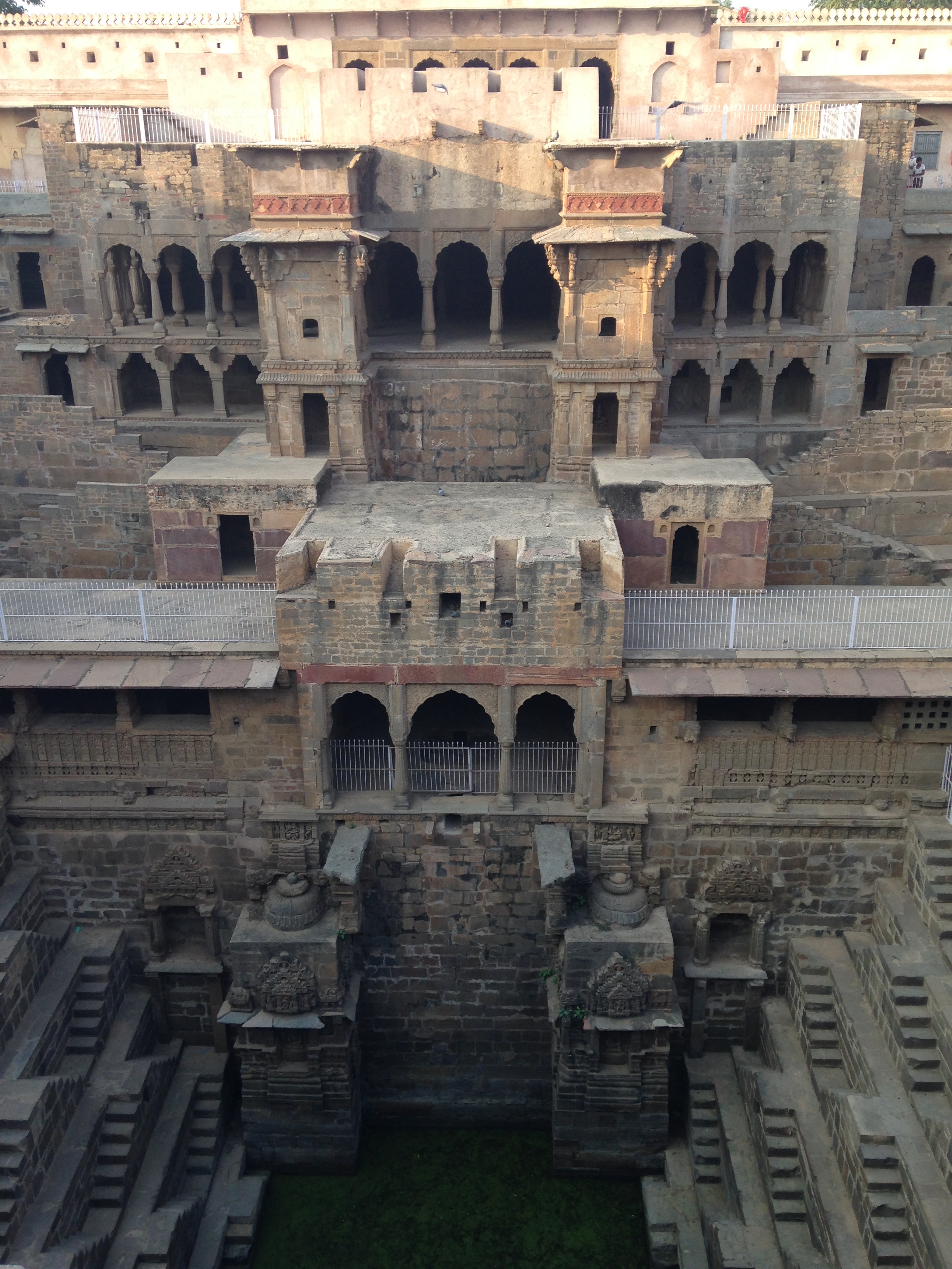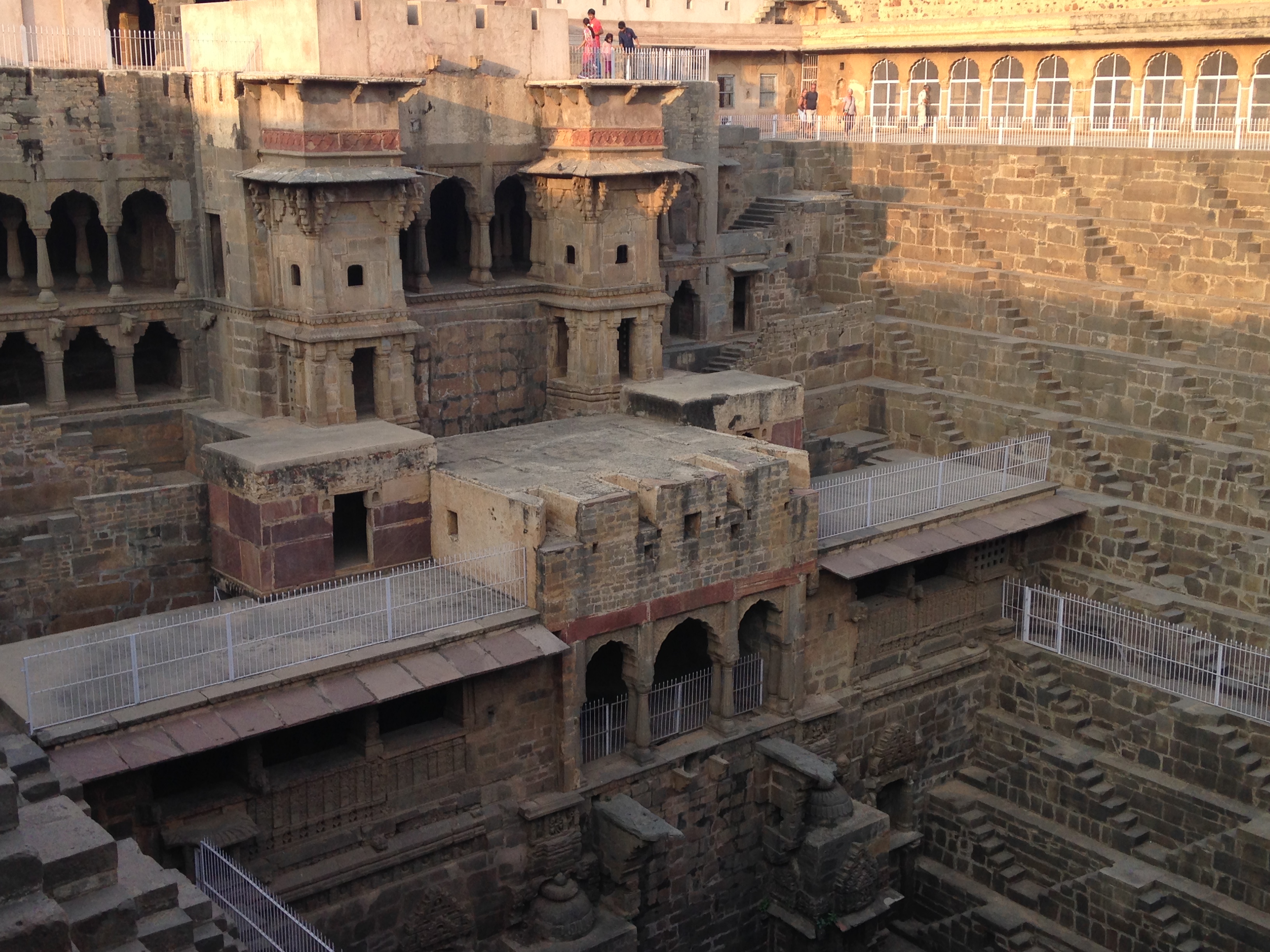 Toujours sur le chemin de Jaipur, nous nous sommes arrêtés à Abhaneri pour voir un superbe baori, un puits en escalier qui permettait de descendre au niveau de l’eau, plus ou moins haut selon les saisons. C’est assez hallucinant comme ouvrage.